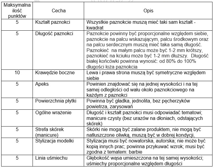 3. Wybór techniki pracy (żel, akryl, polygel) należy do stylisty; dozwolona jest technika łączona, tzw. combo.