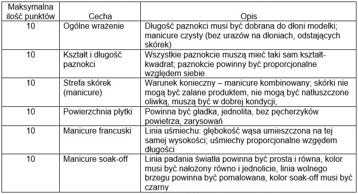 4. Manicure podlega ocenie i musi być wykonany metodą kombinowaną.